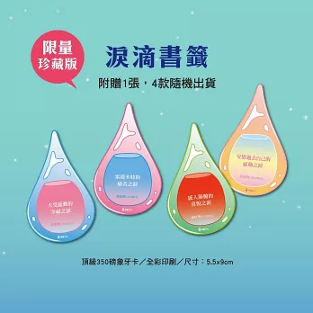 二、淚滴書籤一張,四款設計隨機出貨,使用頂級象牙卡,雙面全彩。