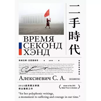 這是一部關於靈魂的歷史,忠實記錄蘇聯人的聲音。亞歷塞維奇耗時三十年,訪談超過千人,寫下「赤色百科」烏托邦系列五部曲。她承自俄羅斯口述傳統,介於報導文學與散文之間的「文獻文學」新體裁,將多人的獨白集結起來,譜出一首首眾聲喧嘩式的複調音樂。《二手時代》是五部曲的最終作,是她對赤色時代的告別。書中橫跨了蘇聯解體前夕到解體後的十年(1991-2001),以及再下一個十年(2002-2012),經歷戈巴契夫、葉爾欽再到普丁。