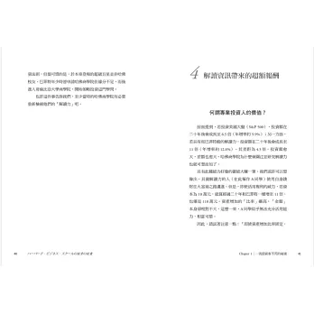 股神巴菲特從1995年開始投資,他運用獨到的解讀力達成驚人績效,經過20年後,其報酬率甚至近乎標準普爾指數500的兩倍,這正是有沒有運用解讀力的區別,但可惜的是,根據哈佛的研究顯示,市場九成以上的投資人都缺乏這種理性解讀能力,本書中也提供巴菲特、達利歐等投資大師的投資策略分析。