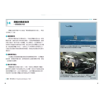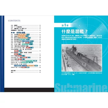 1. 圖文並茂,全彩印刷,從歷史、科技、戰術戰法到全球受到關注的潛艦型號的介紹,全新入門的介紹讀者現今最關心的潛艦話題