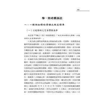 本書三版,亦增列近百則實務見解,尤其就最高法院大法庭關於訴訟標的價額有關之統一法律見解裁判,例如:112年度台抗大字第630號裁定:「債權人本於同種類原因事實所生之請求權,以二人以上之多數債務人為共同被告,就非屬連帶或不可分之可分債務,合併提起普通共同訴訟,經法院判決敗訴並提起上訴後,僅就部分債務人撤回起訴時,得依修正後民事訴訟法第83條第3項規定,聲請退還該撤回部分之上訴審裁判費。」、110年度台上大字第279號裁定:「被告對於第二審認原告之請求全部存在,其主張抵銷之請求全部或一部不成立之判決,提起第三審上訴者,於計算其上訴利益時,應將所不服第二審認原告請求存在之金額及經裁判否准之抵銷額,合併計算之。至上訴裁判費,應於其不服範圍內,按原告請求之訴訟標的金額,依本法第七十七條之十六第一項規定計徵。」、108年度台抗大第953號裁定:「刑事附帶民事訴訟,經刑事庭依刑事訴訟法第504條第1項規定裁定移送於同院民事庭後,民事庭如認其不符同法第487條第1項規定之要件時,應許原告得繳納裁判費,以補正起訴程式之欠缺。」、108年度台聲大字第1525號裁定:「被上訴人於上訴人具狀撤回第三審上訴前,已委任律師為訴訟代理人並代為提出答辯狀者,縱其未依民事訴訟法第九十條第二項規定,於訴訟終結後二十日〈已修正為三個月〉之不變期間內聲請法院為訴訟費用之裁判,亦得聲請本院核定其第三審律師之酬金。」另外增列之其他實務見解,亦均作說明。惟本書內容如有錯誤,未盡之處,敬請各方先進不吝賜正。