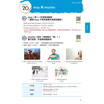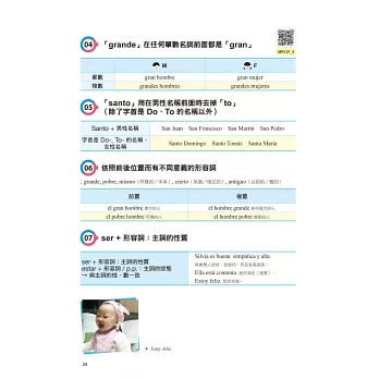 很多人學西班牙語文法,一開始就非常挫折,因為開頭就被硬塞動詞各種時態複雜的規則與不規則變化,只能抱頭痛哭!Silvia老師認為,要先打好基礎,再好好學習文法最豐富的動詞部分。所以本書第一部分先介紹字母和各種基本詞性,第二部分開始介紹副詞、介系詞和時間、數字、天氣等慣用表達法,等到對文法有大致的概念,才開始學習動詞,而且先從需要特別記憶的不規則動詞一個一個慢慢學,然後才是規則動詞變化和各種時態。本書真正做到由淺入深、循序漸進,讓初學者也能輕易精通,一路輕鬆無障礙!