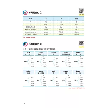 在本書的最後,Silvia老師還貼心附上各種規則、不規則動詞的典型變化記憶表,絕大部分的動詞都能套用其中一種變化模式,任何時候都能簡單查閱,隨時解決關於動詞變化的任何疑惑!