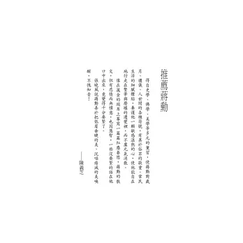 蔣勳,不論在畫作上、詩作上以及藝術上都有相當傲人的成就,而他在散文的創作上,字字雋永,令人回味無窮。《蔣勳精選集》是將蔣勳的散文作品中,精選出許多動人的作品,這些作品除了耳熟能詳外,更是代表蔣勳的散文創作中的痕跡。散文名家張曉風特為文導讀,讓您更能進入蔣勳的散文世界,認識不一樣的蔣勳。