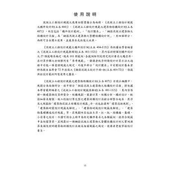 本書出版目的在於提供工程師於鋼筋混凝土結構之設計應用參考,包含第一部分之各構件設計範例與第二部分之設計圖表。各設計範例依循設計規範(土木401-112)之規定,並遵從學術原理(土木406-112)之考量,書中除針對常見混凝土結構構件提供設計範例之詳細計算及解說,也註明引用規範條文出處,本書將可協助讀者瞭解鋼筋混凝土結構原理之考量精神與新版設計規範之應用方法。全書內容除部分係參考本委員會過去所出版之設計手冊及美國Concrete Reinforcing Steel Institute (CRSI)出版之《Design Guide on the ACI 318 Building Code Requirements for Structural Concrete》外,多依編審小組委員多年實務經驗所編撰,內容並遵照內政部「建築技術規則建築構造編(112年版)」、「建築物混凝土結構設計規範(113年版)」以及「建築物耐震設計規範及解說(113年版)」之相關規定。