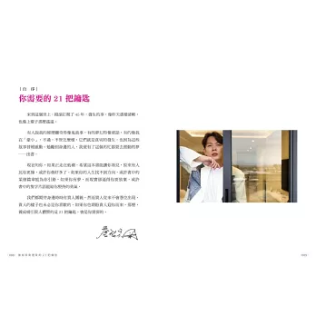 因此,他整理這些深烙在記憶中的視頻,找出吸引貴人的21把鑰匙,希望透過他的分享,讀者朋友也能發掘屬於你自己的吸貴金鑰。