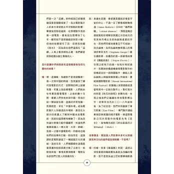 書中收錄了多名好萊塢知名面孔的評論和對話,如劉思慕(Simu Liu)、金大賢(Daniel Dae Kim)、楊燕子(Janet Yang)、錢信伊(Ronny Chieng)、伍思薇(Alice Wu)和鄭肯(Ken Jeong),了解啟發當今的明星們進入電影製作領域的電影經典,以及他們如何將所汲取的養分傳承給下一代的創作者。