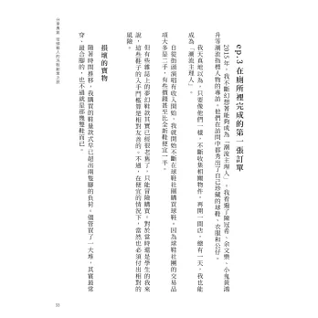 因為一個創業專欄認識了李羊,一來一往間,我看見李羊不同於人的熱情,即使只有文字,都能看見他眼裡燦爛的光彩。從單純愛鞋的大學生到洗鞋店主理人,憑著「摔得越痛,越要站得更高」的骨氣,經歷過各種難關,李羊讓每個平凡人看見成功的可能。如果你正被現實壓得喘不過氣,這本書會讓熄滅的熱情再次燃燒;如果你也想創業,這本書會為你補上差了一點的那份勇敢。