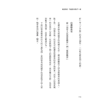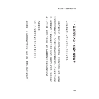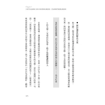 而父母的教養方式可能無意中養成了孩子受凌者特質,也可能無意中教出霸凌者!「父母是孩子生命中的第一位老師,無論是待人的態度、做事的方法或講話的語氣等,都一點一滴影響著孩子」,書中對父母教養的建議更是實用,畢竟學校教育裡沒有一堂課是「如何當父母」或「如何教養孩子」,本書的教養策略非常實用而有效。