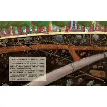 涵蓋地球科學、環境科學、樹木史、植物學、城市規劃、工程、公共衛生和社會學。本書所包含的資訊非常多,是中高年級課堂的完美學習主題。真的很喜歡繪者將森林和城市街道繪製為剖面圖,顯示了這些區域下方的地底狀況。——goodreads讀者June Jacobs