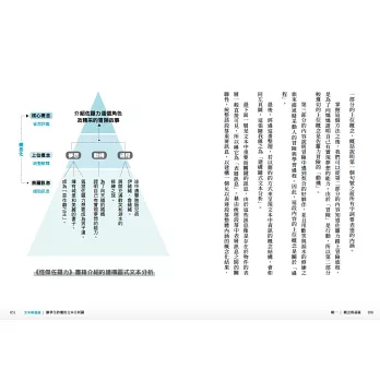 從思考到整理的立體化:閱讀不只專注在平面鋪展的細節爬梳,文中提供許多文本實例,示範如何思考整理、歸納上位,層層脈絡立體延展,找出核心論點。