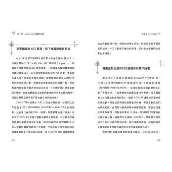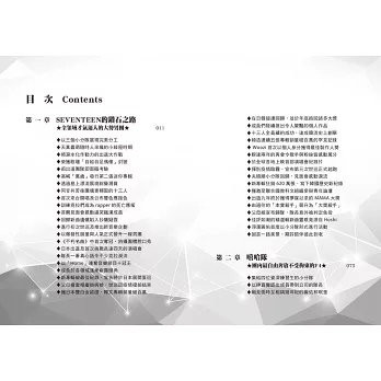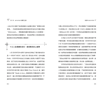 本書完整收錄SEVENTEEN出道以來的心路歷程,以及各個成員的多樣魅力,看SEVENTEEN如何相互扶持,各司其職,發揮完美的分工模式,並在瞬息萬變的韓流音樂界站穩腳步,成為團魂滿滿的正能量男子偶像天團。