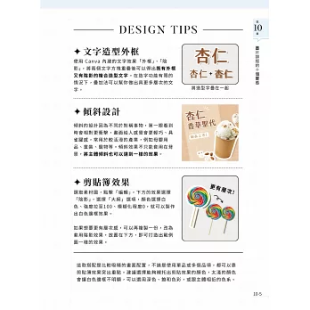 特邀 Canva 美感講師 Annie 在各章節結尾提供專業補充,為讀者提供圖片排版的靈感配置,輕鬆打造具備特色的美感排版!此外,還有設計學習 Q & A、Canva 主題素材包、繁體中文字體介紹及常用快捷鍵等實用內容。