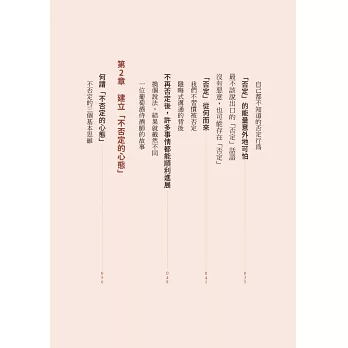 本書教你「不否定」的心態、技術與練習,透過傾聽和認可,改變你無意識的否定習慣。你不需要刻意讚美誰,只要專注於提供心理安全感,讓別人覺得無論說什麼都不會被否定,失敗也不會被責備。