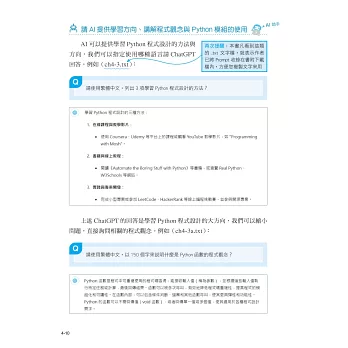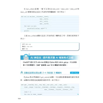 本書另一個特色是精心準備 600 個程式實例,包含 407 個 Excel / Word / PDF / Power BI 自動化實例 + 193 個 Python 基本功演練。在本書學習的初始階段,我們還會在內文穿插一個個 【★AI 神助攻 TIPS】教你用 AI 高效率撰寫程式。