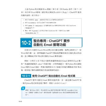 Python 的語法簡潔、擴充性強,是打造辦公室作業自動化的最佳助手,只要用對套件,短短幾行 Python 程式就可執行自動化工作。而且,在開發時還可以呼叫 AI 來幫忙,包括提供想法生成範例、詢問關鍵功能如何撰寫、請 AI 幫忙生成程式註解、解釋程式內容、糾出錯誤直接更正...等,本書會教你善用 AI 大大降低寫程式的門檻!