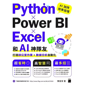 本書的自動化實例程式都是小巧實用,希望透過豐富的範例演練帶你體驗 Python ✕ AI 如何操作 Excel、Power BI 等工具來做到「資料整理+視覺化」的全自動化作業。每一招也都可以搭配書中傳授的指定排程技巧來定期執行,做到真正免人工全自動化,這是用程式做自動化的最大魅力。AI 時代,懂得用 AI 後再多懂點程式,才能真正掌握辦公室作業自動化的無限可能!