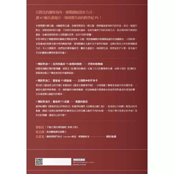透過本書,我們彷彿穿越時空,觀看名畫進行一場別開生面、跨世紀的PK賽,原本遙不可及的藝術也變得更親切有趣了。