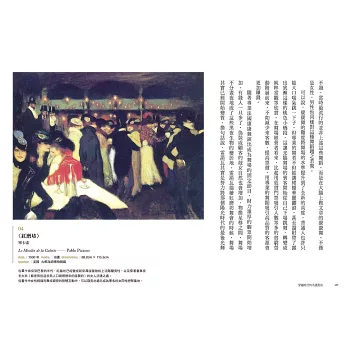 同樣是描繪巴黎的歌舞廳,雷諾瓦《紅磨坊的舞會》充滿了白天的歡樂與生機,而畢卡索的《紅磨坊》則展現夜幕之下舞池賓客的空虛與孤寂。