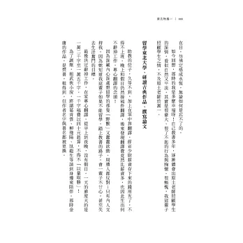 對於《源氏物語》中愛情的浪漫與現實、女性角色的地位和命運、宗教信仰與思想如何影響了紫式部的創作、和歌為什麼成為傳遞情感的重要元素,以及朦朧描寫和文章節奏美感如何影響後世文學創作等,作者均有精闢的思索和研究,提供讀者從中一窺經典文學的堂奧,是理解《源氏物語》無窮魅力的必讀之作。