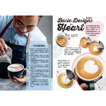 本書的基礎入門,涵蓋了從愛心到鬱金香等多款創意造型,將同樣一種技巧變化運用,你也能入門咖啡拉花的世界!
