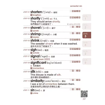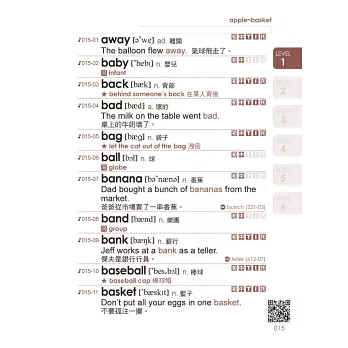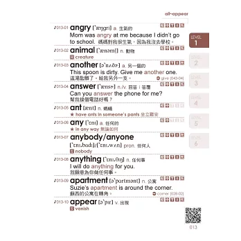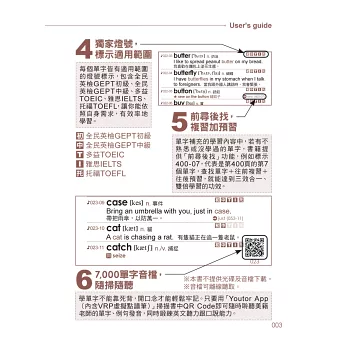 每個單字皆有音標、詞性、中文解釋,並擇一補充同反義字、片語、例句,讓學習者不僅能夠學到單字的基本用法,還能夠舉一反三、靈活應用。雖然書籍小,但內容絕不偷工減料。