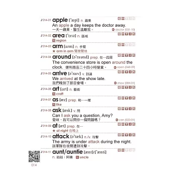 單字補充的學習內容中,若有不熟悉或沒學過的單字,書籍提供「前尋後找」功能,例如標示024-01,代表是第24頁的第1個單字,查找單字+往前複習+往後預習,就能達到三效合一、雙倍學習的功效。