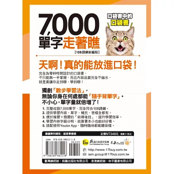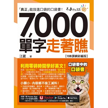 坊間標榜的口袋書,往往都是大大的一本,根本放不進口袋。要不就是為了能放進口袋,而縮減了該有的內容。《7,000單字走著瞧【108課綱新編版】》為想要利用零碎時間學好英文的人量身打造。小歸小,一樣可以五臟俱全!