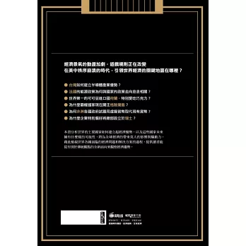 本書分析世界的主要國家如何建立起經濟優勢,以及這些國家未來擁有什麼樣的可能性,將為全球經濟的帶來莫大的影響與驅動力。藉此檢視世界各國面臨的經濟問題和解決方案的過程,提供讀者能從有別於傳統觀點的全新面向來觀察經濟趨勢。