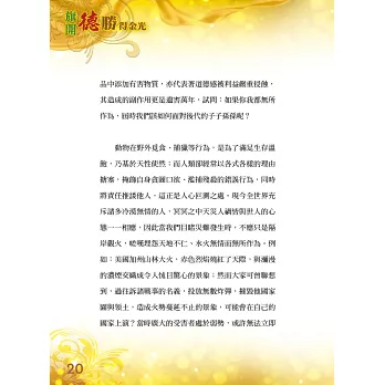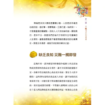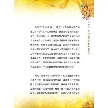 因此,部分人索性選擇放棄,放任自己在人生路上迷失自我,朝向負面的境地沉淪,逐漸步上自毀的道路,最終導致結局更加灰暗困頓,就此墜入萬丈深淵。這樣的現象,在現今社會中屢見不鮮,可能許多人都經歷過,卻不明瞭為何會深陷其中,因此內心感到迷茫不解,毫無頭緒。如果你也曾經有類似的困擾,或在日常生活中感到有志難伸,各種無法言喻的悲傷或遺憾充斥在生命中,不妨細細品味《旗開德勝得金光》書中的論述,或許能藉此一舉扭轉局勢,開創全新的局面。在你眼下翻閱本書的同時,即為一種福分的牽引,過往數十年不得其解的困擾,將在此刻有了重獲新生的契機。