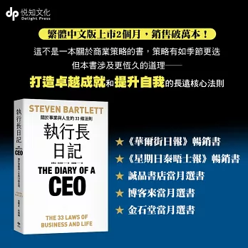 ★「新一代執行長逐漸接管商業世界。那些自誇自大、表現得彷彿從不犯錯的執行長,正在被願意談論自己感受、以好奇心領導並努力精進的執行長取代⋯⋯而史蒂文・巴特利特正是引領這場革命的先驅!任何希望超越自我並帶領所有人進入新世代的領導者,《執行長日記》不容錯過!」──Simon Sinek│《先問為什麼》《無限賽局》作者