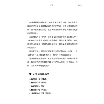 本書透過:掌握自我、精通敘事、確立人生哲學、熟習團隊合作,以最簡潔、最有影響力的方式,提供我們所有人都可以從中學習的永恆要義,進而打造出屬於自己的成功人生。