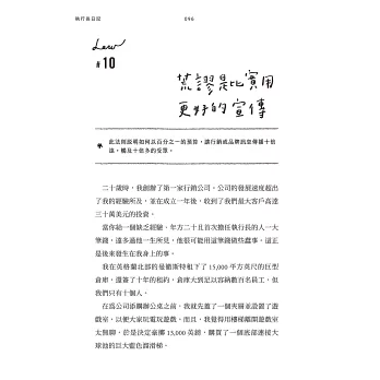 更令我感到驚艷的是,每一條法則都有至少一則真實的故事案例解說。案例的取材精準到位,不僅在理智上完全令人信服,更能在情感上觸動人心,深化了讀者們的記憶。這是一本令我愛不釋手的好書!」──愛瑞克│《內在成就》作者、TMBA 共同創辦人
