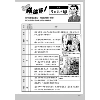 ◎歷史人物成績單/以成績單方式趣味分析豐臣秀吉各項能力指標。