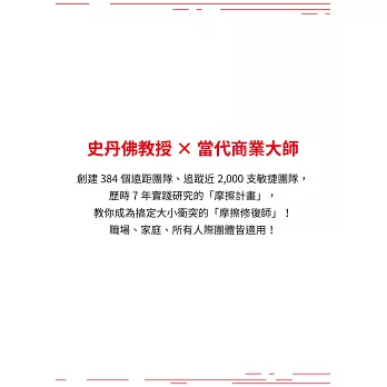 領導者在消除和管理摩擦問題上所扮演的角色,對於建立能夠在正確時機加快或放慢發展的公司來說,至關重要。蘇頓和拉奧用富有洞察力的故事和可行的經驗來破解這項挑戰,你一定不能錯過。──史宗瑋(Clara Shih),Salesforce雲端服務部門執行長