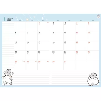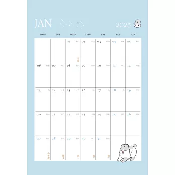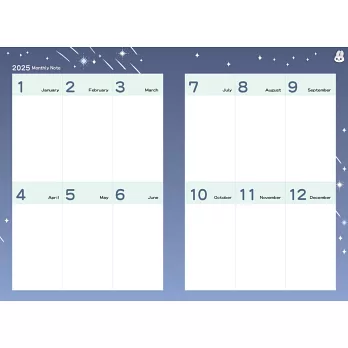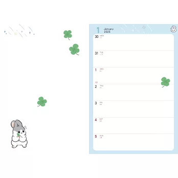 ‧1~12月週間曆(左頁空白筆記頁,右頁週間區共3款,每月變換)