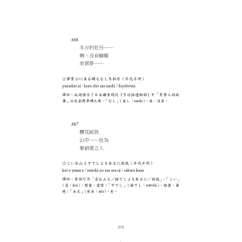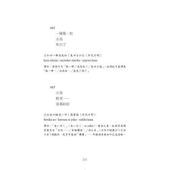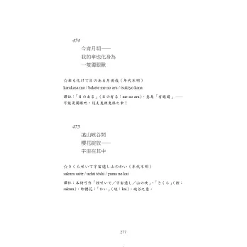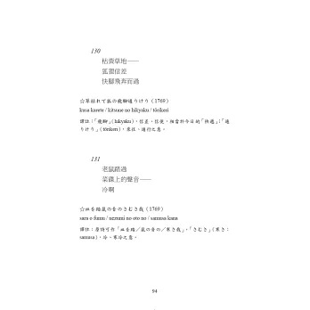 本書精心選譯了475首與謝蕪村的俳句,依年代先後編排並附上原文、讀音及註解,供讀者品味鑑賞。