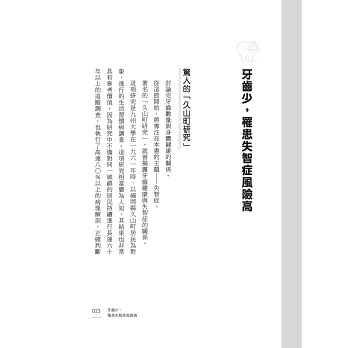 從醫30多年的福田真一醫生,親上火線解說一顆牙如何成為大腦健康的關鍵!他在本書中結合科學,整理歸納出三大重點:
