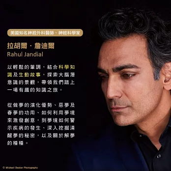「詹迪爾博士是夢境世界的絕佳嚮導──這是一本引人入勝的書!」──卡蘭.拉詹醫師(Dr. Karan Rajan)《這本書可能會救你一命》作者