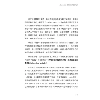 擁有神經外科醫師和神經科學家雙重訓練的詹迪爾博士,以輕鬆的筆調,結合科學知識及生動故事,探索大腦潛意識的景觀,帶領我們踏上一場有趣的知識之旅。從做夢的演化優勢、惡夢及春夢的功用、如何利用夢境來激發創意,到夢境如何警示疾病的發生、深入挖掘清醒夢的秘密,以及關於解夢的種種。