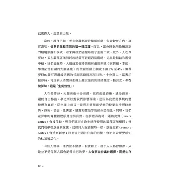 長久以來,夢一直是神祕的泉源。然而,夢境其實是腦化學反應產物,是每晚入眠時發生在大腦的非凡變化。做夢時,不僅大腦十分活躍,情緒反應也與清醒時無異。夢能夠幫助我們解決問題,學習樂器、語言或舞步,提供關於自身健康的線索。即使是被遺忘的夢境,依然能形塑我們的思想。