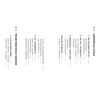 ‧整理並非萬能,但它提供一個改變的契機,透過整理自省,找到對自己而言重要的事,從而感到安心與自在,誠摯推薦此書給您。──吳敏恩|《家的樣子,你的樣子》作者、簡約生活實踐家
