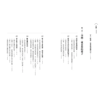 ‧人們期待生命的富足,並不等同於物品塞滿屋。留些空白,多些餘裕,讓自己的思緒煥然一新,內心舒爽和清明。──王意中|王意中心理治療所 所長/臨床心理師