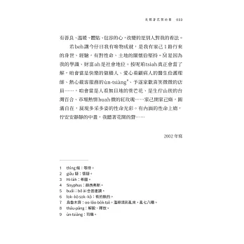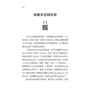 現此時咱需要閣khah濟台語文作品,這嘛是我出版這本冊的動機,我kā 2002年到tann所寫的台語散文,tîng修改、整理出版。想beh為台語文主流化盡淡薄仔心力,想講文章已經出世矣,應該愛予人有機會讀著咱媠khuì的母語文學作品。