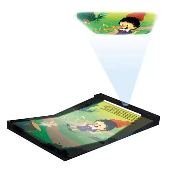只要關掉室內的燈光、把書盒底的開關打開,就可以在天花板投影出9張美麗的圖片。一邊看著圖片,一邊說故事,就像是在欣賞一齣精彩的故事劇場,一定讓孩子喜愛睡前故事的心願被大大滿足。