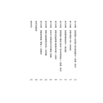 15篇哲學討論指南,結合書中內文與延伸思考材料,幫助讀者檢視學習成果,並提供豐富問題討論