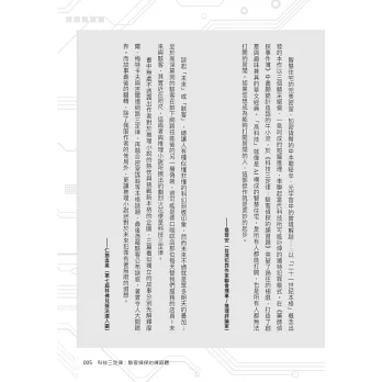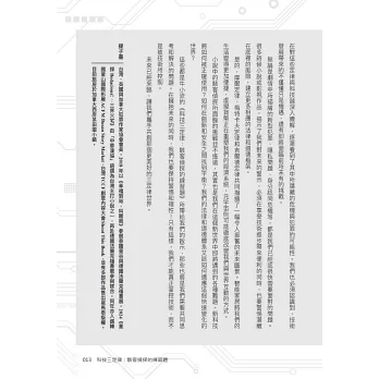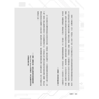 《科技三定律》這一部令許多推薦人眼睛一亮的小說,是牛小流擺脫了過往充滿異國風情,或大馬藥劑師查案的創作軌跡,一頭栽入不同於他的本質學能和生活經驗的科普題材,企圖營造出一個令人耳目一新的犯罪世界觀。作者將那些牽制著人類生活的定律所延伸出的智能家居、虛擬貨幣和元宇宙等科技概念,純熟地融入這部小說中不同的事件與命案中,繪製出了一幅令人驚嘆的現代啟示圖景。
