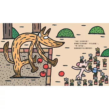 接著,狐狸爸爸遇到在幫花朵澆水的小豬、在屋頂漆油漆的小豬……究竟,狐狸爸爸有沒有成功吃到小豬,為自己的孩子們帶回豐盛的小豬大餐呢?