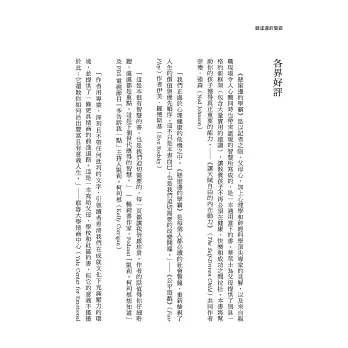 「這是本很有智慧的書,也是我們迫切需要的,每一頁都讓我倍感珍貴。作者的話值得你仔細聆聽,處處都是重點。這是下個世代應得的智慧。」──暢銷書作家,Podcast節目「凱莉‧柯利根想知道」及PBS電視台節目「多告訴我一點」主持人凱莉‧柯利根(Kelly Corrigan)
