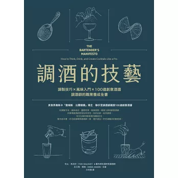 《調酒的技藝》是由詹姆斯・比爾德獎(James Beard Award)得主、著名調酒師托比・馬洛尼(Toby Maloney)和芝加哥知名酒吧「暮色時刻」(The Violet Hour) 團隊共同編寫的一本調酒指南。本書從調酒的基礎概念出發,旨在教授讀者如何掌握調酒的技巧,並在此基礎上創造出屬於自己的創意調酒,宛如資深酒保一般自信 從容地創造出獨特的飲品。